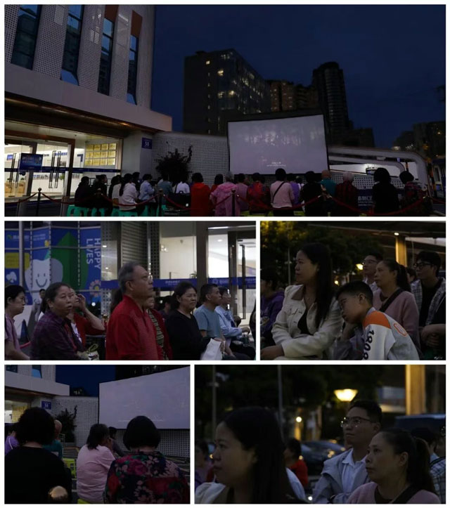 活动当晚,新桥口腔成都总院(成都人南新桥口腔医院)正门前被精心布置为温馨的“临时露天影院”,并贴心准备了零食和饮用水。受邀前来的社区居民在工作人员引导下有序签到、落座,满怀期待地等待电影开场。