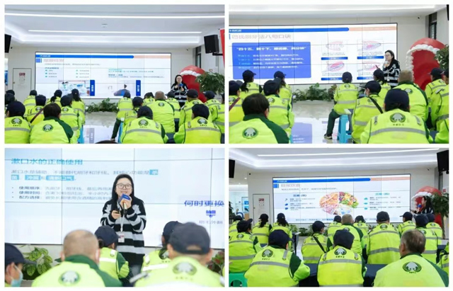 活动伊始,新桥口腔工作人员带来了针对性强、实用性高的口腔科普知识分享。考虑到环卫工作者长时间在户外劳作,往往容易忽略自身的口腔健康问题,工作人员用通俗易懂的语言重点讲解了日常口腔护理的核心要点:从牙齿敏感、牙周炎的预防,到巴氏刷牙法的实操步骤——“刷毛与牙面呈45度角,小幅度水平颤动,逐一清洁每颗牙齿的内外侧及咬合面”,并现场示范指导,帮助大家纠正错误的刷牙习惯。