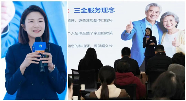思想的共识,需要行动落地。在全体嘉宾的期待中,新桥口腔成都总院牙管家负责人吴黎登台,详细解读新桥口腔以“全口、全家、全生命周期”为核心的服务理念,并正式发布新桥口腔“种植术后维养项目”具体内容。