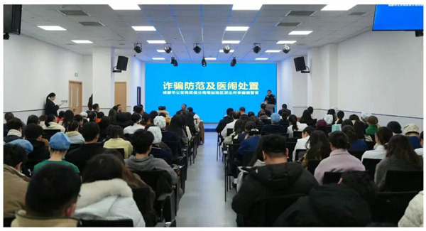 12月11日上午8点,新桥口腔例行晨会在成都总院(成都人南新桥口腔医院)如期举行,新桥口腔全院医护人员、牙管家及后勤等部门人员共同参会。本次晨会特别邀请成都市公安局武侯区分局南站地区派出所李建钢警官莅临指导,围绕日常高频出现的诈骗风险及医闹突发事件处置两大重点,为院区全体工作人员开展专题培训,进一步夯实院区安全管理与风险防控基础。