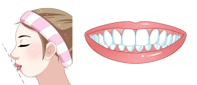 1口呼吸:长期口呼吸会导致上门牙前突、下颌后缩,即大家口中常说的“小下巴”“腺样体面容”,此外还会引起牙弓狭窄、唇闭合不全等问题,影响面部美观。