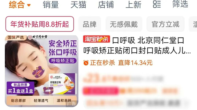 现在某网购平台上有很多防口呼吸的贴纸,有的家长从来没有带孩子去就诊过,仅仅因为发现孩子睡觉时张嘴,就买来给孩子用上。这种做法其实很危险!