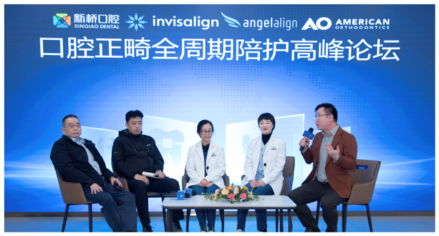 在现场,新桥口腔业务院长刘姗、儿童早期矫正专科主任周媛媛,与时代天使、隐适美、AO三大正畸品牌代表同台论道,共同围绕口腔正畸全周期陪护服务的行业价值与标准化建设展开了深度探讨。